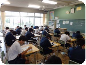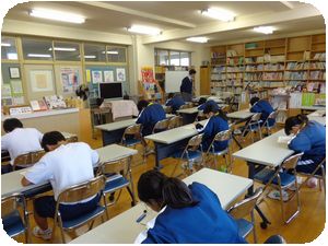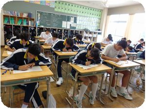 5校時に全校一斉に第1回校内漢字検定が行われました。1年生は初めてなので全員6級を受験します。2・3年生は級ごとの教室で試験を受けました。