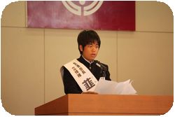 それぞれ責任者と立候補者が演説を行いその後全校生徒が投票しました。