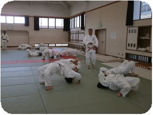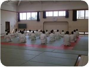松島先生と外部指導者の北川先生のもと柔道の授業が始まりました。さっそく1時間目に3年生の授業がありました。武道場に受け身で畳を打つ音が響いていました。
