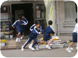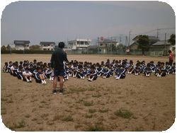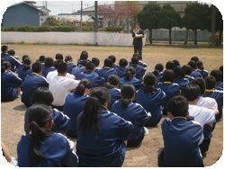 今回の避難訓練は地震発生を想定して、グランドに避難することがねらいです。