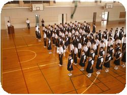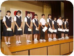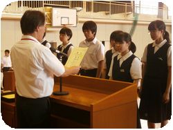 終業式後、表彰が行われて。バドミントン、ラグビー、硬筆展の表彰が行われました。