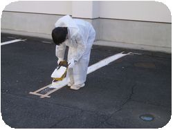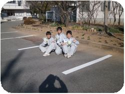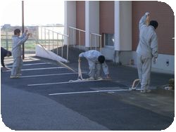 用務員さんの指導のもと、中学校の駐車場のラインひきをやりました。ガムテープでマスキングをして、ペンキでラインをひくのですが3人で協力してきれいにできました。明日は最終日です。しっかりやりとげてください。