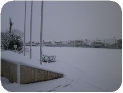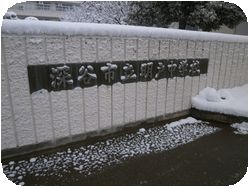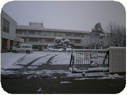 昨日の雪が残って白銀の世界に変わった明戸中学校です。
