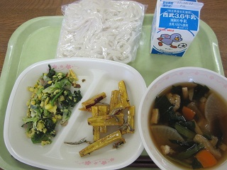 牛乳・うま煮丼・国産野菜コロッケ・切り干しとツナのサラダ