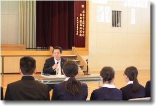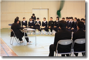 市長さんが3年生と「市長の対話会」で、明戸中に来てくれました。