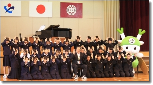 市長さんに歌を披露しました。3年生の『あなたへ』 その後、「ふっかちゃん」登場!
