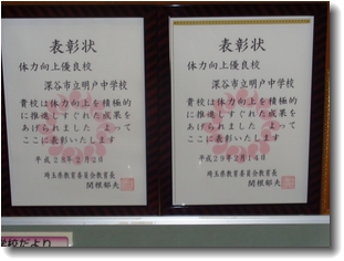 ちなみに、明戸中は平成27年度、28年度も体力向上優良校で表彰されています。