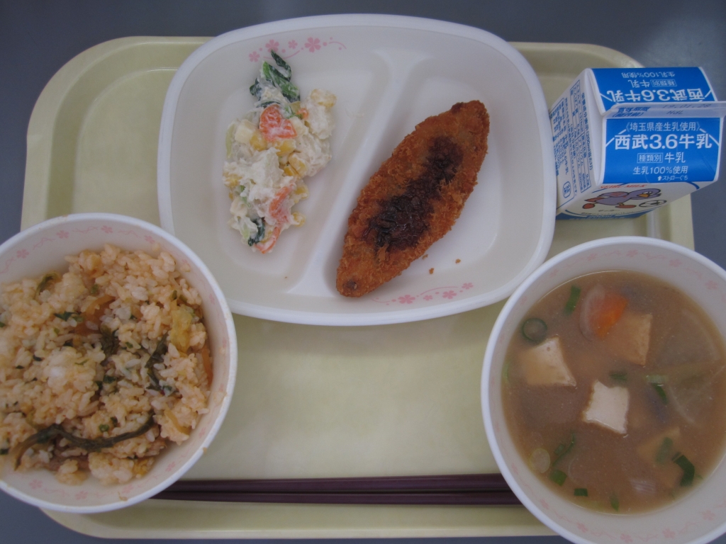 牛乳・うま煮丼・国産野菜コロッケ・切り干しとツナのサラダ