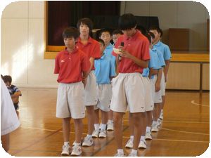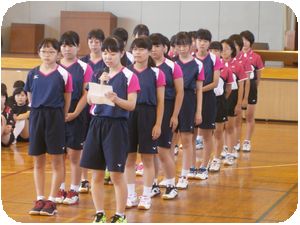 各部の3年生から激励のことばの後、2年生の部長より新人戦に向けての決意がありました。陸上は県大会に向けての決意を発表しました。