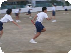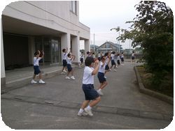 グランド内とトラックではバトンパスの練習、南側では長縄跳び、朝礼台前ではヨサコイソーラン、