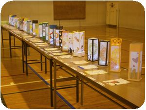 会場には美術の授業で作ったランプシェードと国語の授業で作った歌が展示してありました。