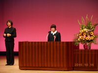 第1部の優秀人権作文発表で、本校2年1組の岩田愛貴さんが「心のコップを上向きに」という題名で発表しました。大きな声で堂々とした態度での発表は、深谷市内の中学2年生の代表にふさわしいものでした。