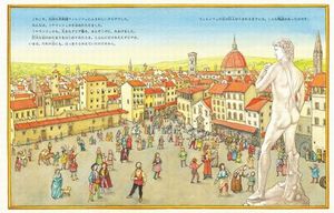 イタリアのフィレンツェの町にミケランジェロのダビデ像が完成するまでのエピソードが、きれいな絵で語られています。まるでタイムスリップしたように当時の町並みや風景が描かれていていました。
