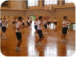 今日も校庭のコンディションが悪く、体育館と武道場でよさこいソーランの練習を組別に行いました。