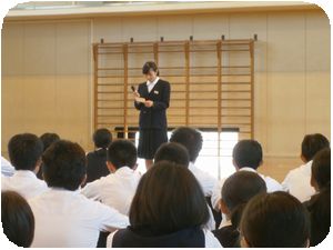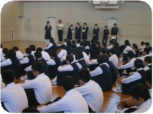 今日の朝会は人権月間の一環で「いじめ撲滅宣言」に関する内容でした。
