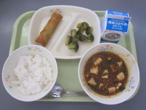 今日の給食はみんな大好きの四川風麻婆豆腐でした!
