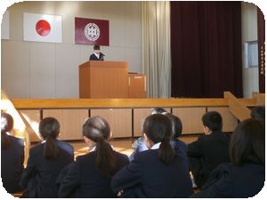 校長先生からは人種差別と戦ったネルソン・マンデラの紹介と「自分を大切にすることができ、他の人も大切にできる人」になって欲しい。と講話がありました。
