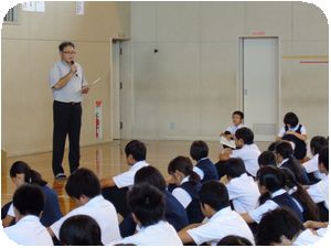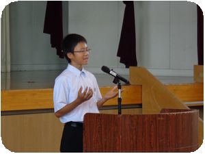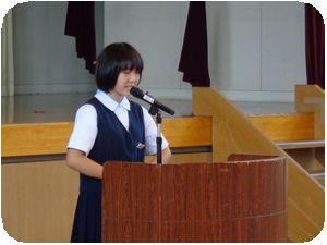 2年の金井君は来年から選挙権が18歳になることについて発表しました。3年の清水さんは2020年に行われる東京オリンピックについて発表しました。2人とも全校生徒の前での発表で緊張していたようです。この体験をいかして本番では思い切ってスピーチをしてきてください。