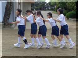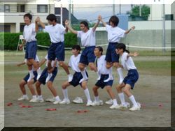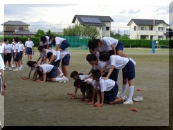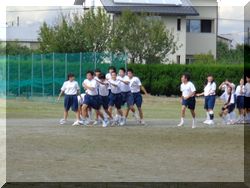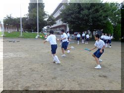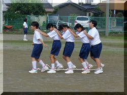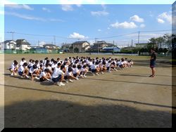今日はグランドがつかえる状態だったので、久々にグランドで練習ができました。赤・白・青の組別に団長を中心にリレーのバトン練習やムカデリレーの練習を行いました。最後にソーラン節の組別の発表がありました。