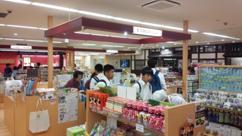 映画村に着いてお土産を買っています。