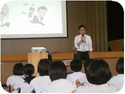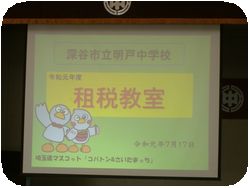 熊谷県税事務所から2人の職員を招いて、税に関する授業を行っていただきました。
