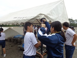 浄化センターのグランドに移動して全校生徒でテントはりや除草作業、石ひろいを行いました。明日も天気は大丈夫そうです。コンディションを整えて体育祭を成功させましょう。