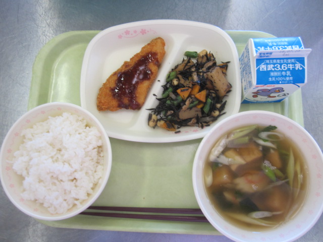牛乳・うま煮丼・国産野菜コロッケ・切り干しとツナのサラダ