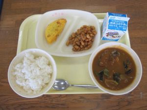 コーヒーミルク・カレーピラフドリア風・フライドチキン・クリスマスサラダ・野菜コンソメスープ