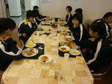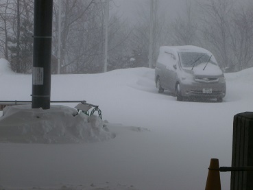 スキー教室2日目、朝食は全員食べることができました。体調が悪くなってしまった1人以外、実習に参加できそうです。ところが、天候が悪く実習開始を30分遅れでスタートすることになりました。