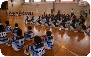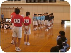 最後に陸上に参加する選手からの決意と、校長先生から激励の言葉、そして『栄光の懸け橋』で送られました。