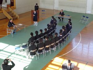 本日、11月21日に小島市長さんにお越しいただき、市長さんと3年生生徒との対話会が行われました。