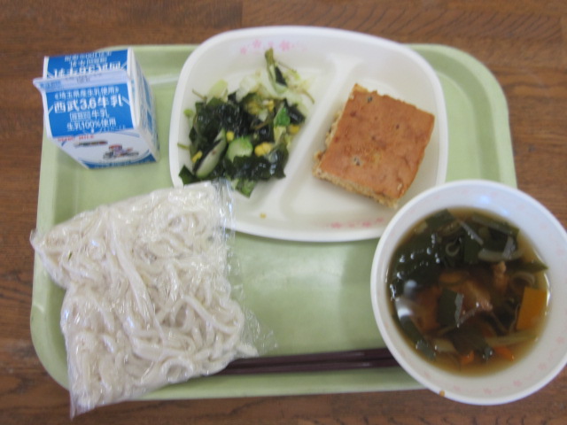 今日は、沖縄の郷土料理を意識した「ソーキそば」が給食に登場しました。