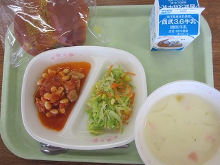 鶏肉と大豆のトマト煮は今月の新メニューです♪