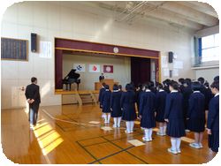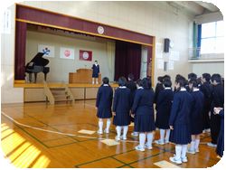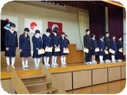 1・2年生も参加して3年生の終了式が行われました。