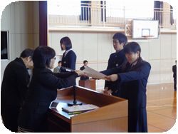 修了証書授与の後、3箇年皆勤賞の授与が行われました。34人中12人が皆勤でした。