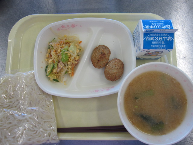 牛乳・麻婆ラーメン・お揚げのサラダ・彩の国肉まん・はちみつゆずゼリー