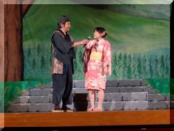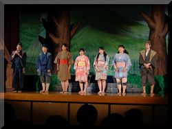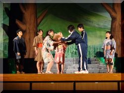 芸術鑑賞は劇団 民話芸術座による演劇教室と『花咲き山』の公演でした。代表生徒と松島先生で朗読劇を行いました。