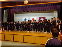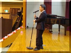 閉会式で教頭先生が期待どおり歌を披露。最後はみんなで大合唱!