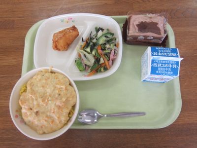 今日はみんな大好きなカレーピラフドリア風と唐揚げにセレクトケーキがつきました。