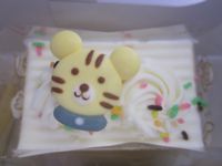 ショートケーキには動物のマジパン、チョコケーキには星形のチョコがついています!