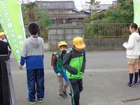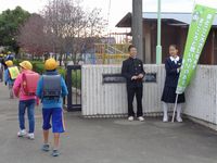 生徒会本部役員の4名が、明戸小学校西門で、大きな声でにこやかにあいさつ運動を行いました。