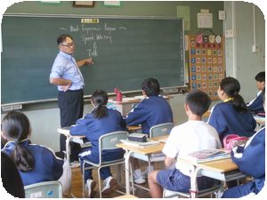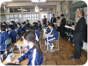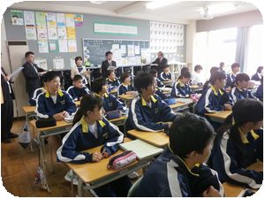 本校の武澤教諭の英語の授業が行われて、小学校からの先生が参観しました。