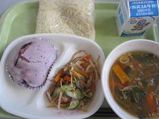 牛乳・麻婆ラーメン・お揚げのサラダ・彩の国肉まん・はちみつゆずゼリー