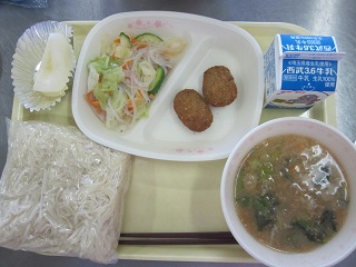 牛乳・うま煮丼・国産野菜コロッケ・切り干しとツナのサラダ
