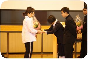 後半は感謝の会で2人の調理員さんに話をうかがい、感謝の作文、花束贈呈が行われました。