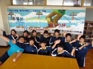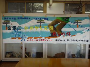 平成30年1月17,18,19日に行われるスキー教室の横断幕が完成しました。1,2年生全員からデザインを募集しデザインが決まりました。