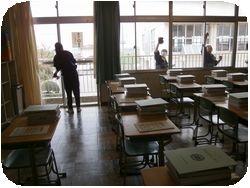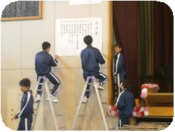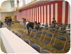 新2、3年生が自分たちの新しい教室や入学式の会場を作りました。