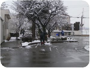 昨日から降りだした雪のため今日は2時間遅れの授業になりました。