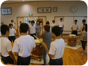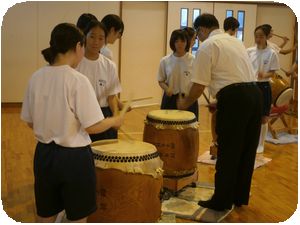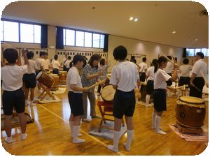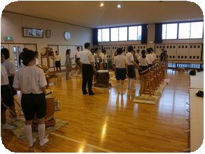 毎年、青桐祭で披露する新井橋獅子太鼓の第1回目の練習でした。地域の保存会の方がボランティアで講師を務め伝統の継承をします。力強い太鼓の音が校舎に響いていました。