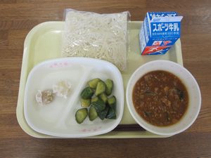 牛乳・麻婆ラーメン・お揚げのサラダ・彩の国肉まん・はちみつゆずゼリー